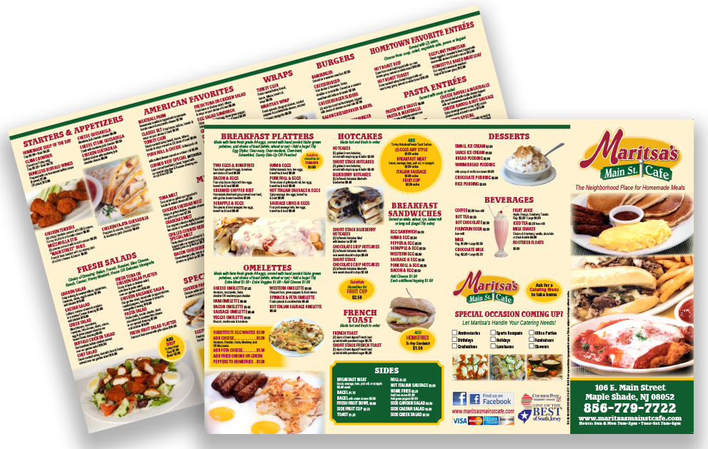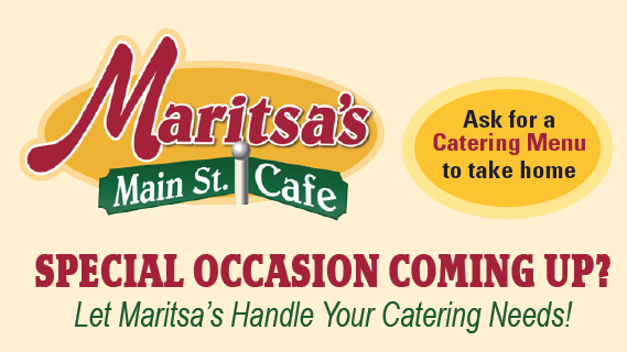 Serving breakfast, lunch and dinner. We are a full-service, family friendly restaurant specializing in homemade meals. All of our menu items are available for fast take-out. Maritsa’s offers generous portions at affordable prices, in addition to breakfast and lunch specials during the week. We also offer some of our menu items as party trays for your next catered event.